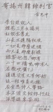 10寄揚州韓綽判官